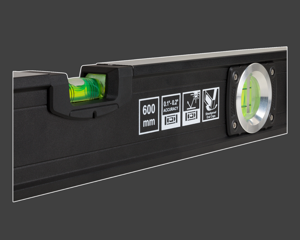 Combines a high-contrast backlit LCD display with traditional bubble vials for fast, reliable readings in any light conditions. -