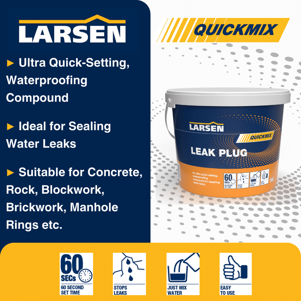 QUICKMIX Leak Plug is in ultra quick-setting, waterproofing compound for repairing water leaks.